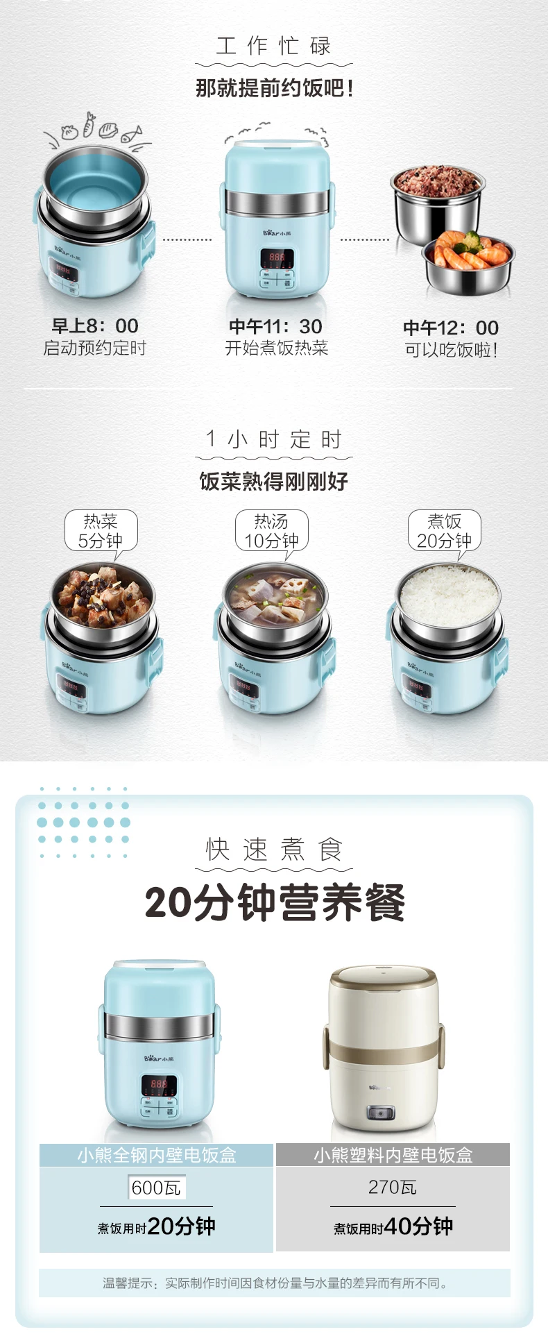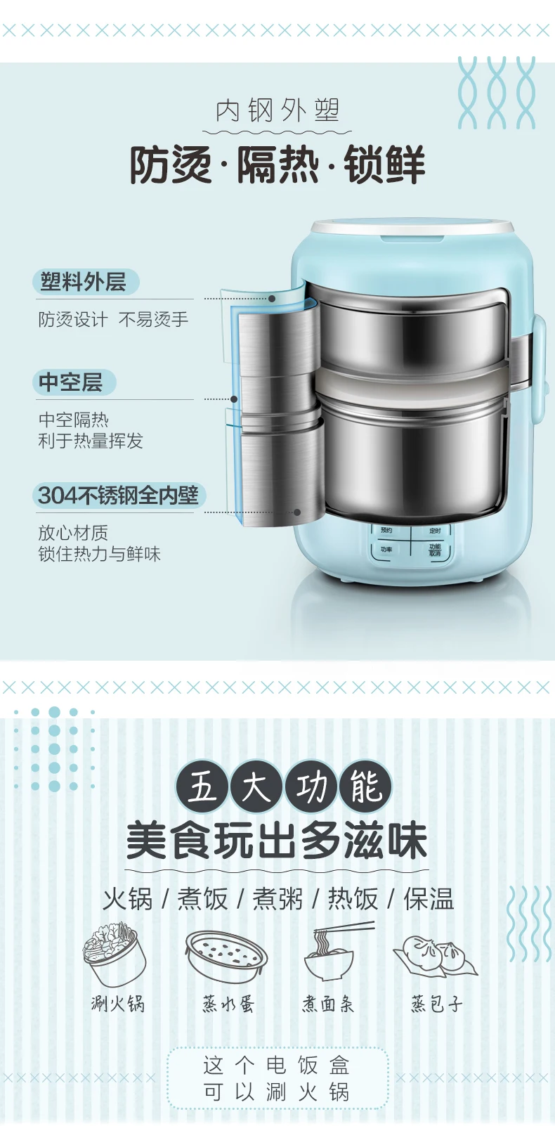 | Double Layer Intelligent Rice Cooker Electric Lunch Box Pot DIY Office Student Reservation Timing Portable Cooking Rice Steamer |