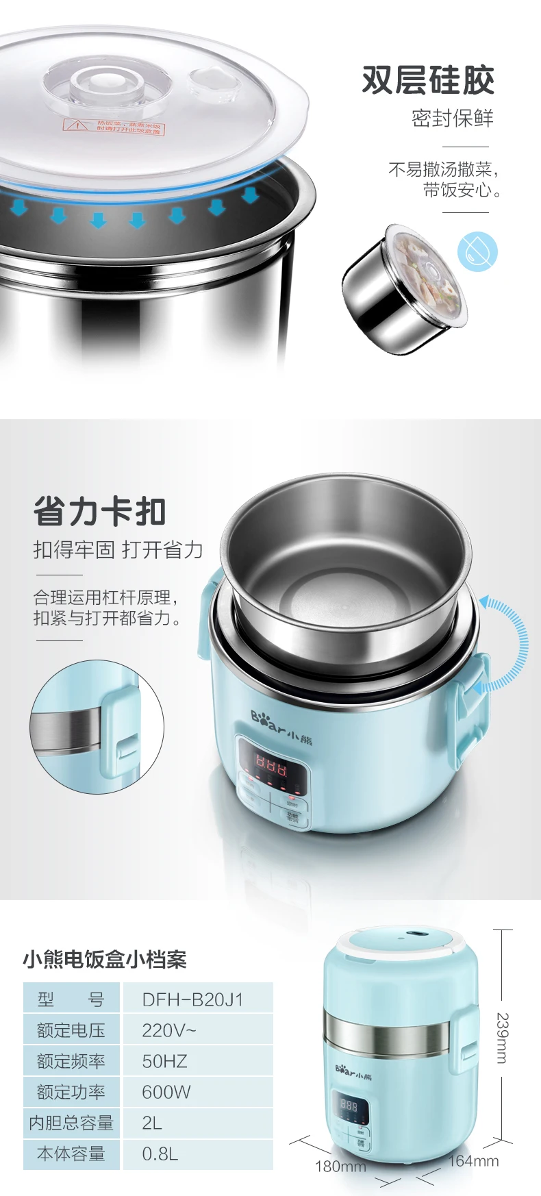 220V Multifunctional 3 Layers 2L Electric Rice Cooker Portable Intelligent Electric Heating Lunch Box For Travel School