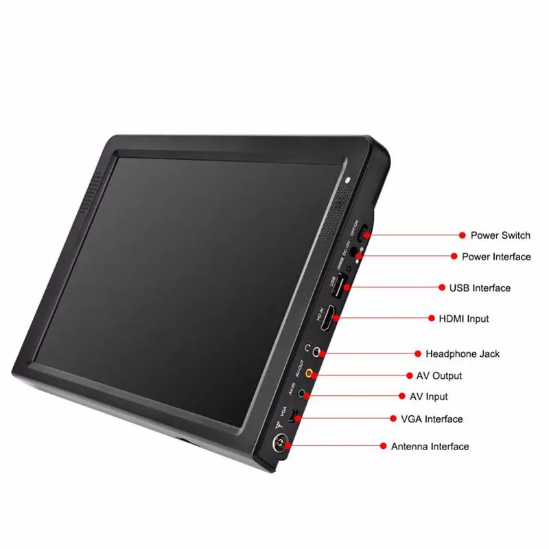 Interface: DC12v power port, AV input port, 3.5mm audio jack, USB, SD card slot, Antenna port, HDMI Input port